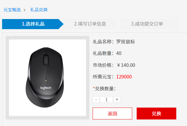 6.元宝甄选每次可兑换一个礼品,如需兑换多个礼品,请重复每次兑换步骤;